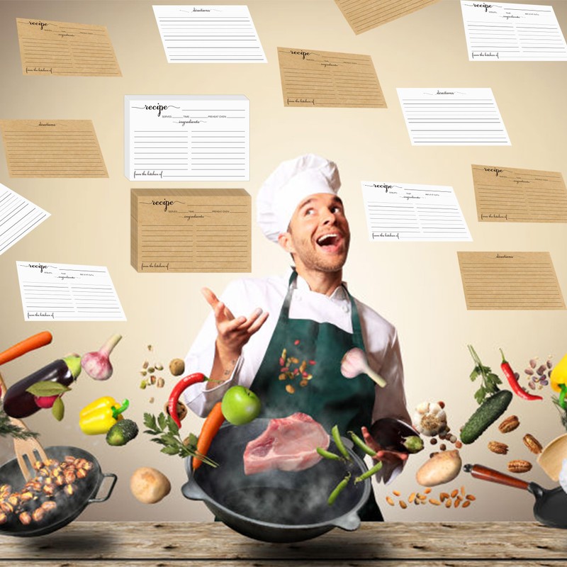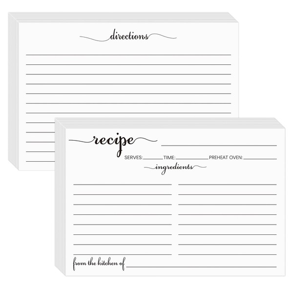 - PREMIUM QUALITY CARDS: Using premium quality paper and print. Its standard size ensures that they fit perfectly into your recipe box or cookbook stand, offering a convenient and organized way to store your favorite recipes.Perfect for bridal showers, gifts, and updating your own personal recipe box or binder!