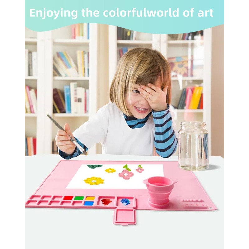 - 【Painting Supplies & Kids Gift】The kids painting mat is very suitable for painting, handicraft making, resin, mold making, jewelry DIY, etc. It can prevent water, oil, pigment, resin overflow, and keep the desktop clean. The drawing mat with a exquisite gift box is an excellent gift for children, inspiring their creativity and hands-on abilities.