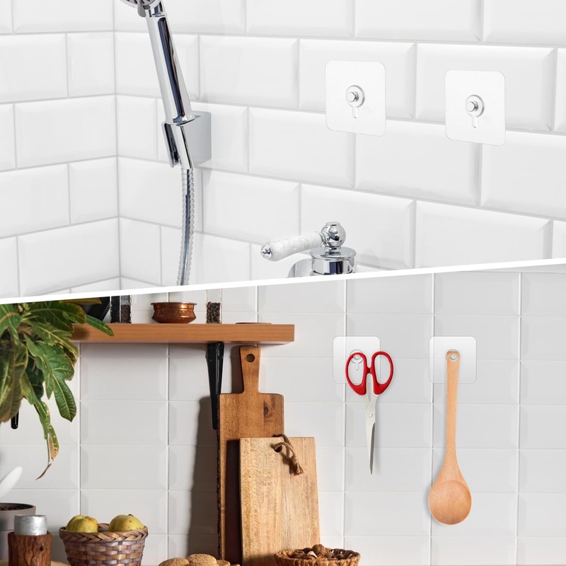 - [Wide Application] Our adhesive picture hangers are suitable for hanging picture frames, kitchen shelves, towels, bathroom accessories and tools, and can be applied to smooth surfaces such as tiles, ceramics, glass, wood, metal and plastic. (It is not recommended to stick adhesive shower hooks on painted surfaces)