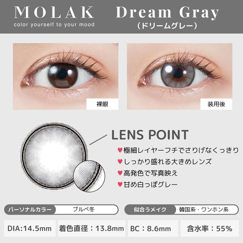 【メーカー公式店舗】[ 宮脇咲良プロデュース&イメージモデルカラコン ] MOLAK(モラク) 1DAY 10枚入り ドリームグレー [0.00]
