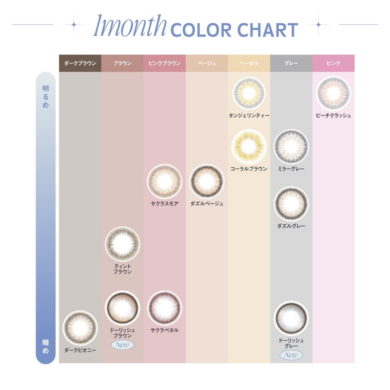 - [LENS FEATURE]・低含水で長時間装用やドライアイの方にもおすすめ ・非イオン性で汚れにくく長時間の装用でも視界をクリアに ・色素が直接目に触れない色素内包の構造 ・フチに丸みをもたせる形状で自然な装用感を実現