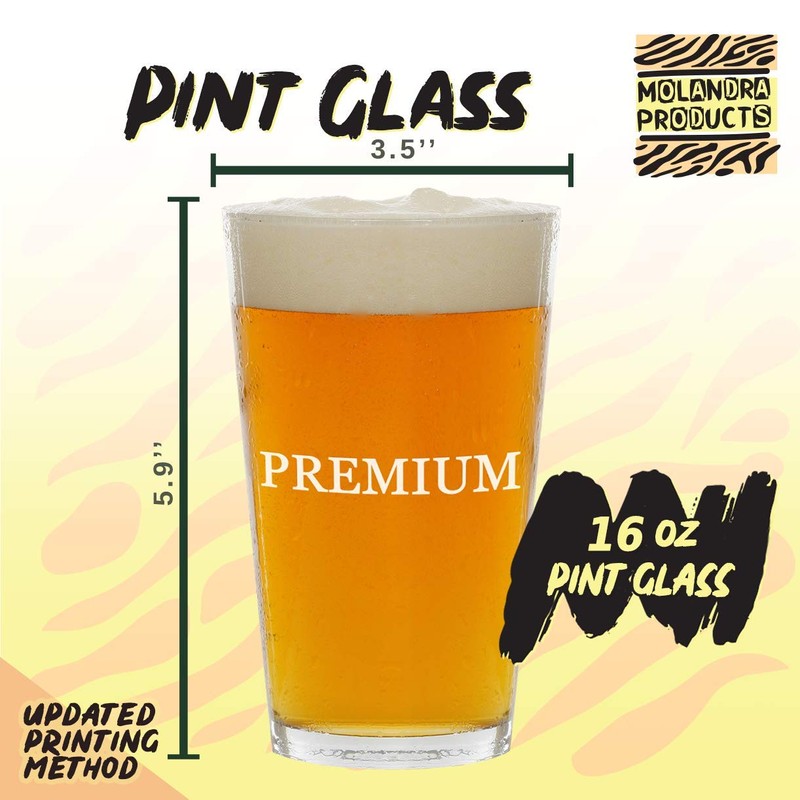 - DURABLE AND STURDY - This 16oz glass beer pint glass cup features a durable construction, a clean and refined look, bright vibrant coloring and perfect printing. Premium glass used in the manufacturing process gives this beer pint glass a nice sturdy feel.