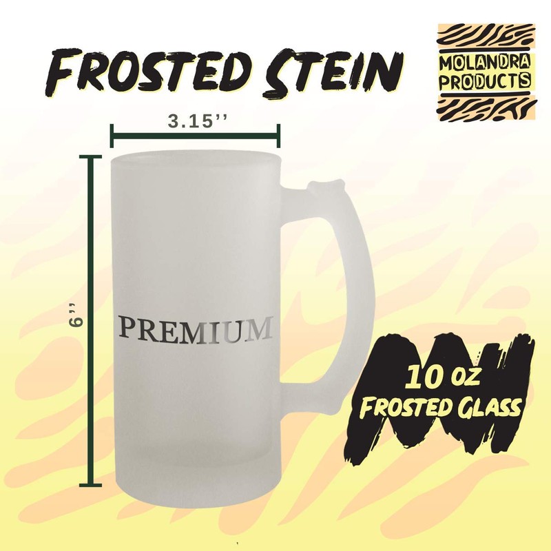 • DURABLE AND STURDY - This 16oz frosted beer stein is made of a premium quality glass. It is thicker than most steins on the market making it sturdy and durable for everyday use.