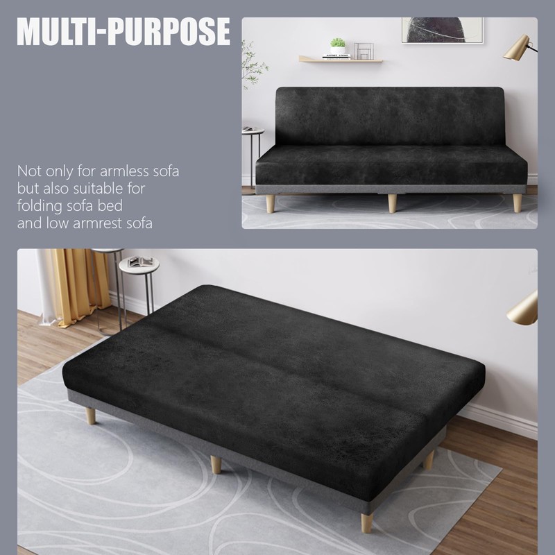 molasofa Leather Like Stretch Futon Slipcover Armless Futon Bed Sofa Cover Fu...