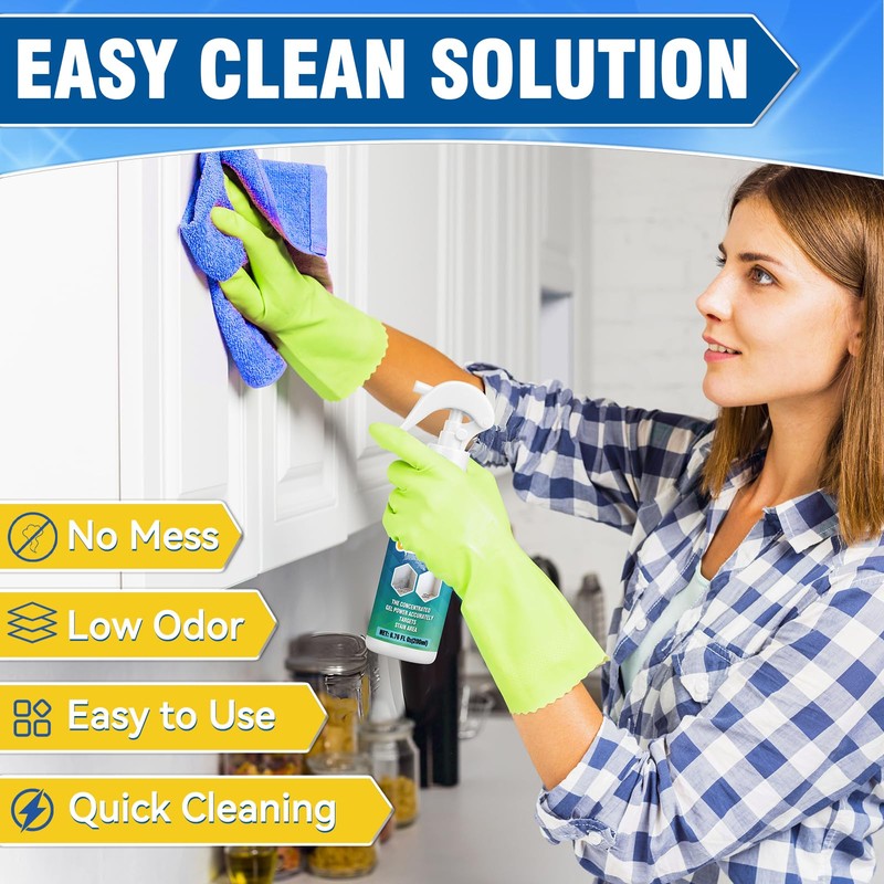- Multi-Surface Cleaner: Stains often accumulate in corners where tiles and walls meet, as these areas lack proper ventilation and are hard to clean thoroughly. Our stain cleaning spray solves this problem: it works on tiles, walls, wood, granite, and marble, making stain removal easy. Its universal compatibility makes multi-surface cleaning more cost-effective