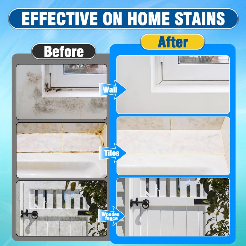 Mold Stain Cleaner, Stain Cleaning Spray for Tiles Ceilings Decks, Multipurpose Home Stain Bleach for Wood, Brick, Sinks, Grout, Washing Machines, Household Bathroom Shower Cleaner, Interior/Exterior