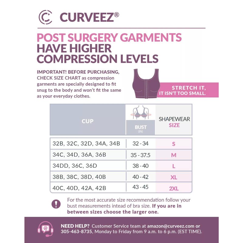 CHECK SIZE CHART BEFORE PURCHASE: Curveez surgical bra for women is an essential garment following aesthetic surgeries such as breast augmentation, inframammary surgeries, breast lift, breast reduction, mastectomy and more.