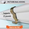 Molding Hooks - 10 Pack - Picture Rail Hangers - Brass Plated Steel - Picture Rail Hooks Wide
