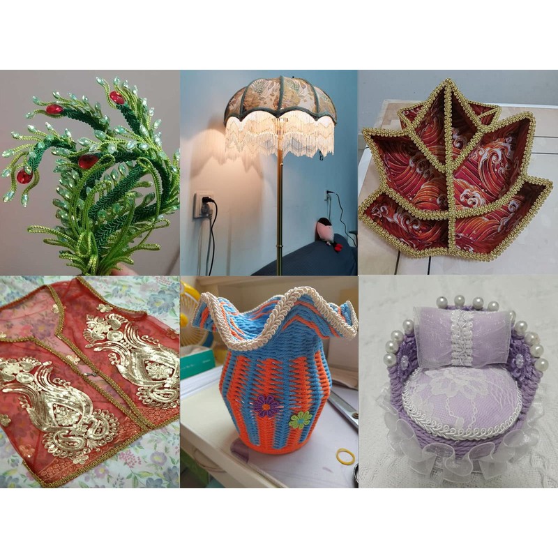 - Amplias aplicaciones: el ribete de cardán de poliéster es perfecto para coser y tapicería, como añadir adornos a vestidos, abrigos, zapatos, sombreros, como decorar pantallas de lámpara, manta, sofá, muebles, cortina, mantel.