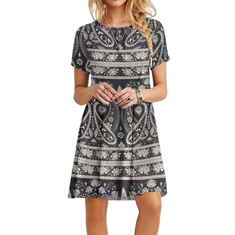 - Features: casual style,short length,short sleeve,O-neck,soft and stretchy,Flowy dress, comfortable to wear.