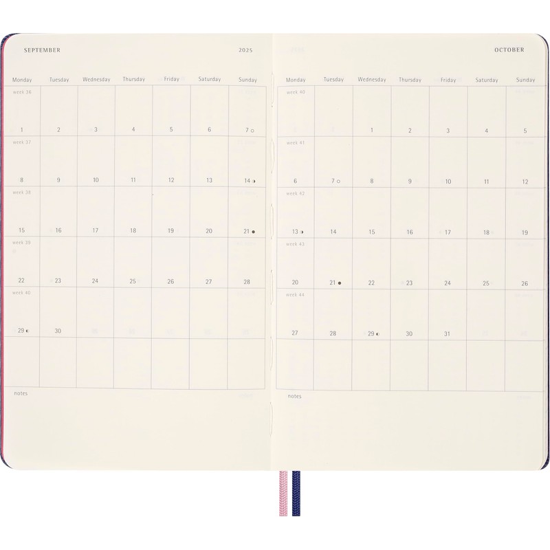 - ORGANIZATION: the 2025-2026 agenda features a two-page layout, on the left the days for weekly appointments and, on the right, a lined page for taking notes and organizing ideas.
