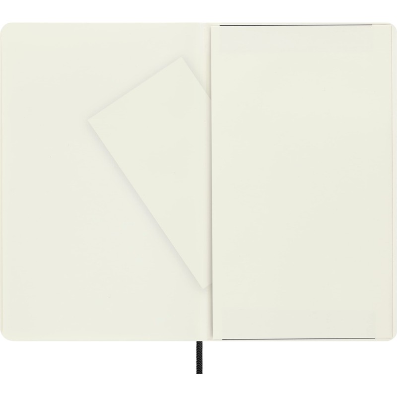- The expandable inner pocket contains a text detailing the history of Moleskine.