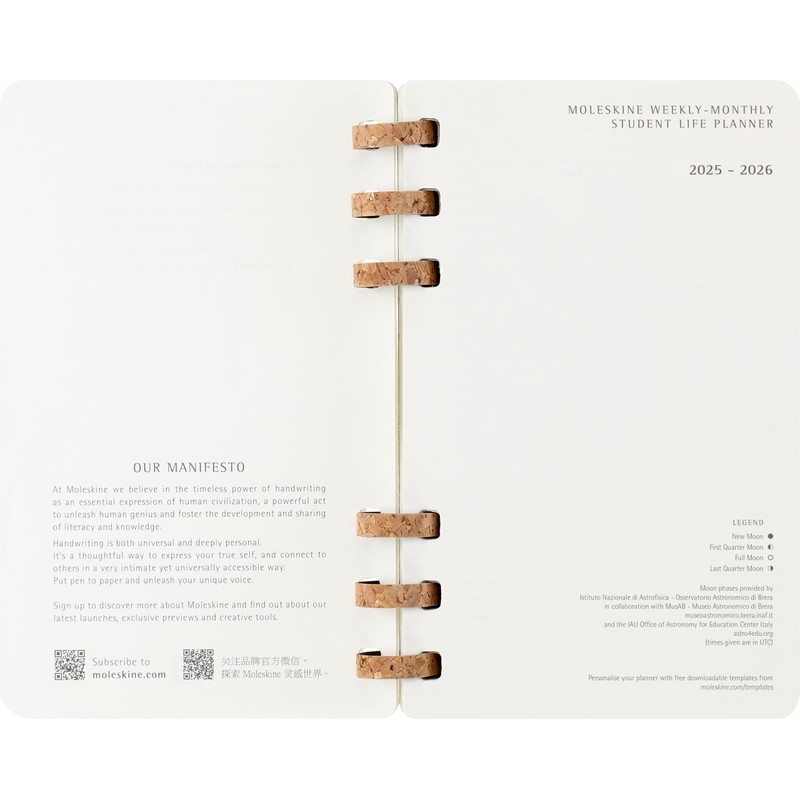 - Ivory-coloured, 100 g/m² acid-free paper; Sturdy yet flexible cork-mix spiral binding