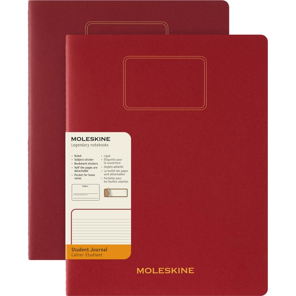 Moleskine Student Cahier Journals (Set of 2), Soft Cover, Ruled, XXL (8.5" x 11"), Cranberry Red