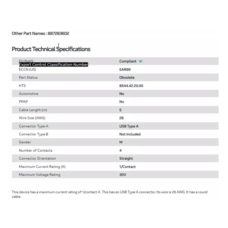 Molex USB-A Male to Bare Wire, 5 Meter, 4 wire plus shielded ground, 28 AWG