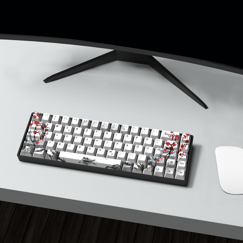 - 【ARTWORK】With thermal sublimation process, the color pattern is color brighter and not easy to fade, without plum blossoms printings on the keycaps as decoration on the keyboard.