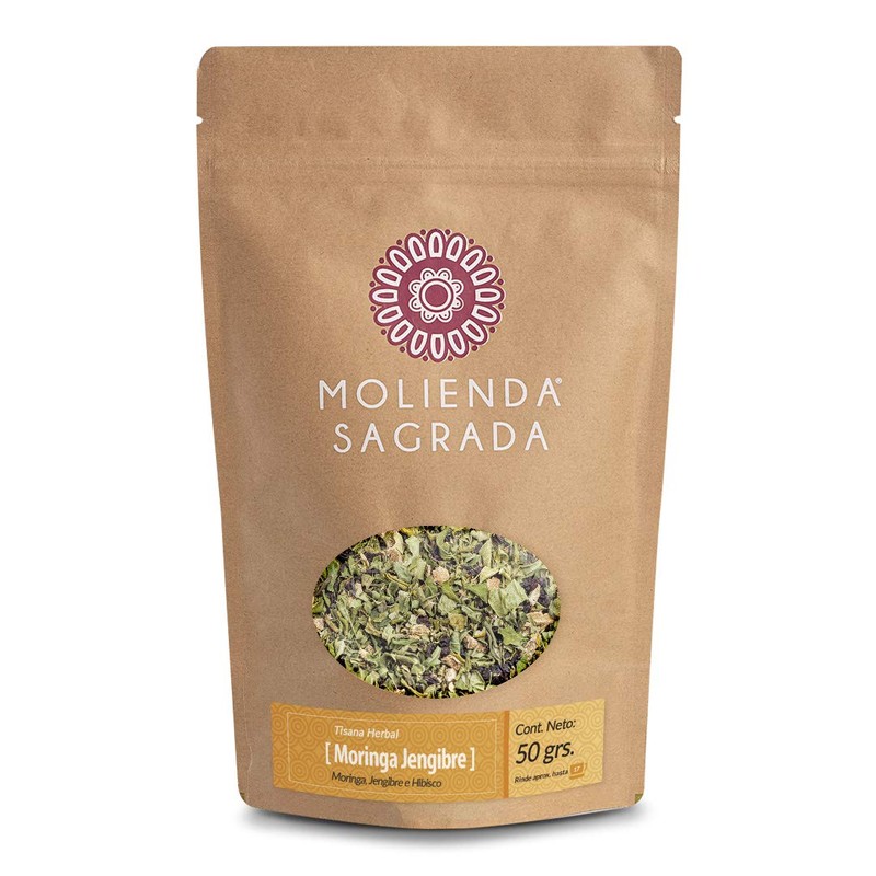 - DESCUBRE: Esta infusión saludable , altamente nutritiva gracias a sus hojas de moringa orgánica, que en combinación con el característico sabor del jengibre y un toque de deliciosa jamaica cristalizada , armonizarán tus sentidos y alimentarátu alma. Ingredientes: Moringa, Jengibre e Hibisco.