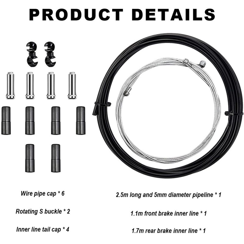 - The high-quality brake cable bicycle set contains for replacement, includes 2.5 m Bowden cable, inner brake wires, S-hooks and end caps