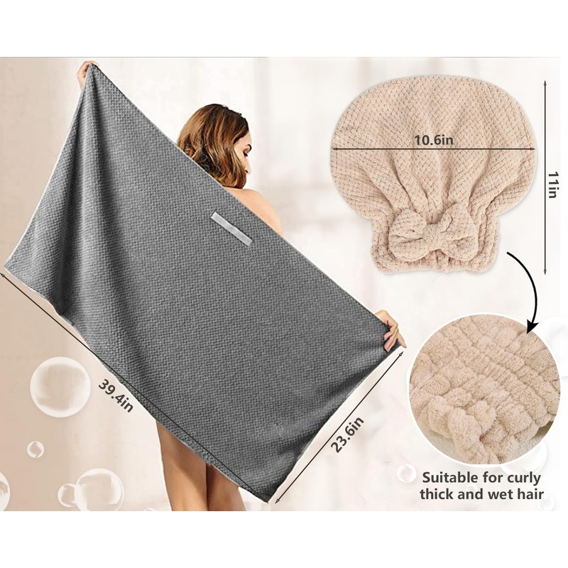 - Versátil para todo tipo de cabello: ya sea que tengas cabello corto, largo, rizado o liso, nuestro juego proporciona una cobertura completa y un secado eficiente. La envoltura más grande se adapta al cabello grueso/largo, mientras que el turbante es ideal para un estilo rápido.