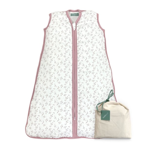 molis&co - Baby Sleeping Bag 2.5 TOG - All-Year Sleeping Bag - Baby Sleeping Bag Newborn - Premium Muslin, Sleeveless Winter Sleeping Bag Padded - Premium Quality - Floral Pink (85 cm)