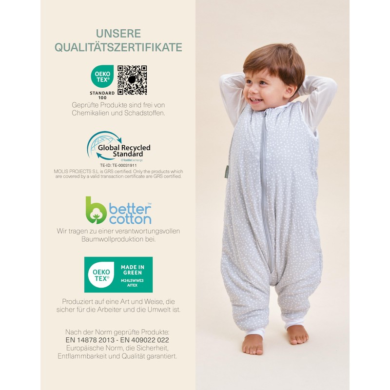 - Safety and comfort: Molis & Co sleeping bags have a protection on the zip that prevents friction with the baby's skin. The zip is double opening for easy nappy changing.