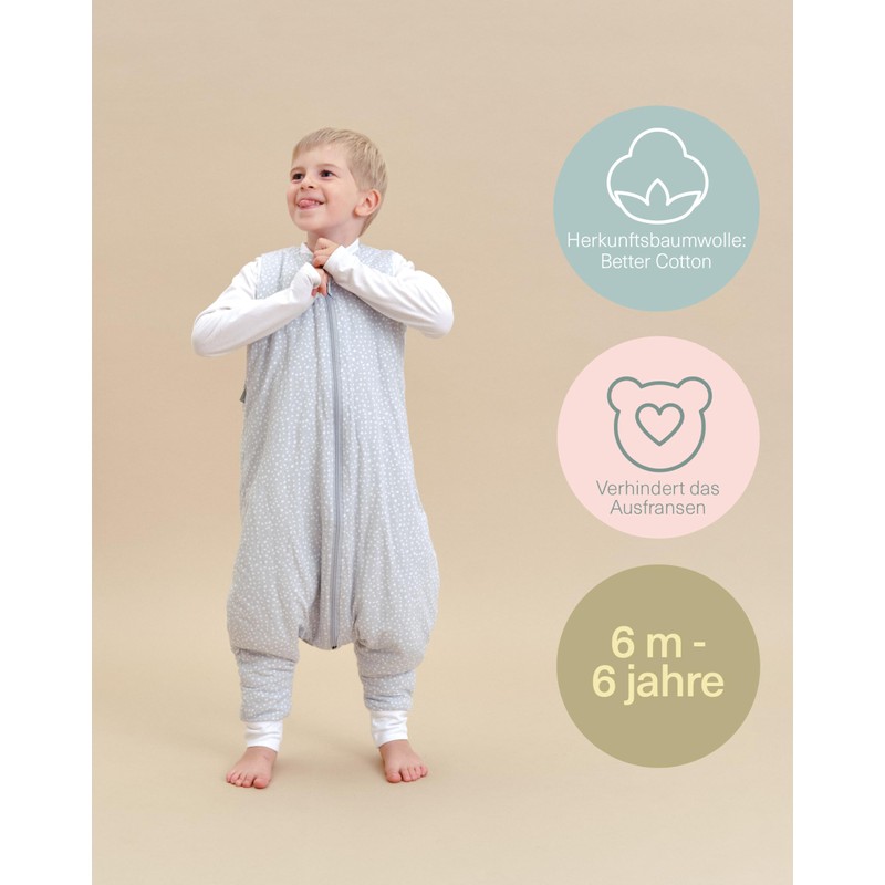 - Very warm and lightweight baby sleeping bag with feet from molis&co. Ideal for all year round use (tog 2.5) or for rooms with temperatures above 15ºC. Sleeveless. If you hesitate between two sizes, we recommend choosing the smallest