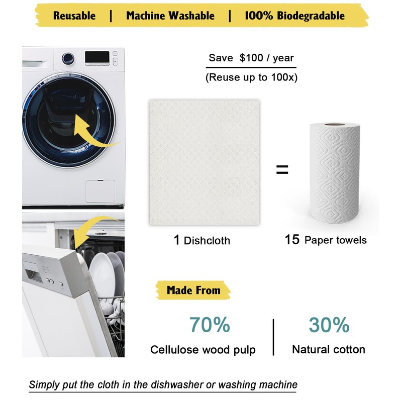 - 【Reusable Dish Cloths】1 cloth = 15 paper towels, these Swedish dish towels can clean up messes time and time again, when you think they need a refresh, just throw them in the washer and they'll come out like new.