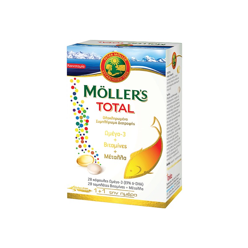 Moller's Total Omega 3 + Vitamins + Minerals is a multivitamin supplements containing vitamins and minerals in combination with omega 3 fatty acids. Suitable for*: