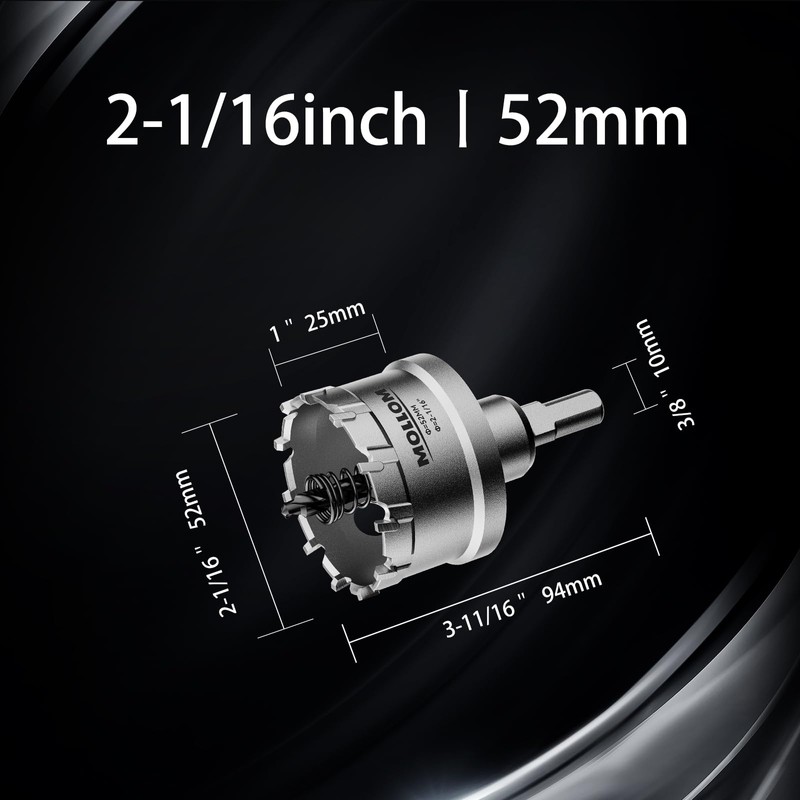 - 【Dimension】Cutting Dia: 2-1/16'' | 52mm;Shank Dia: 10mm | 3/8" ;Hole Saw Depth : 25mm | 1"
