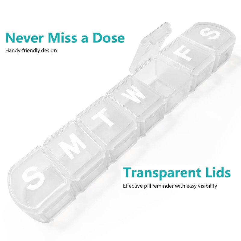 - BPA-Free: Our weekly pill divider is made of food grade material PP plastic, no chemical smell, Sturdy, durable, sealed and dust-proof, safe for medical use.