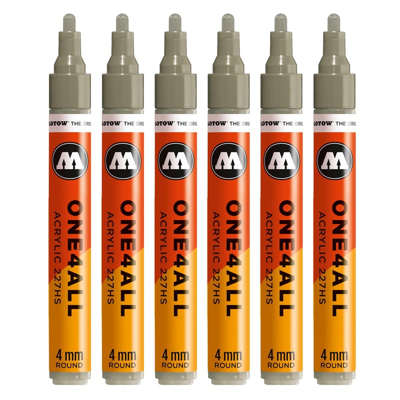 - Box contents: 6 Molotow One4All 227HS acrylic pens with a line width of 4.0 mm in colour 261 stone grey medium. Made in Germany