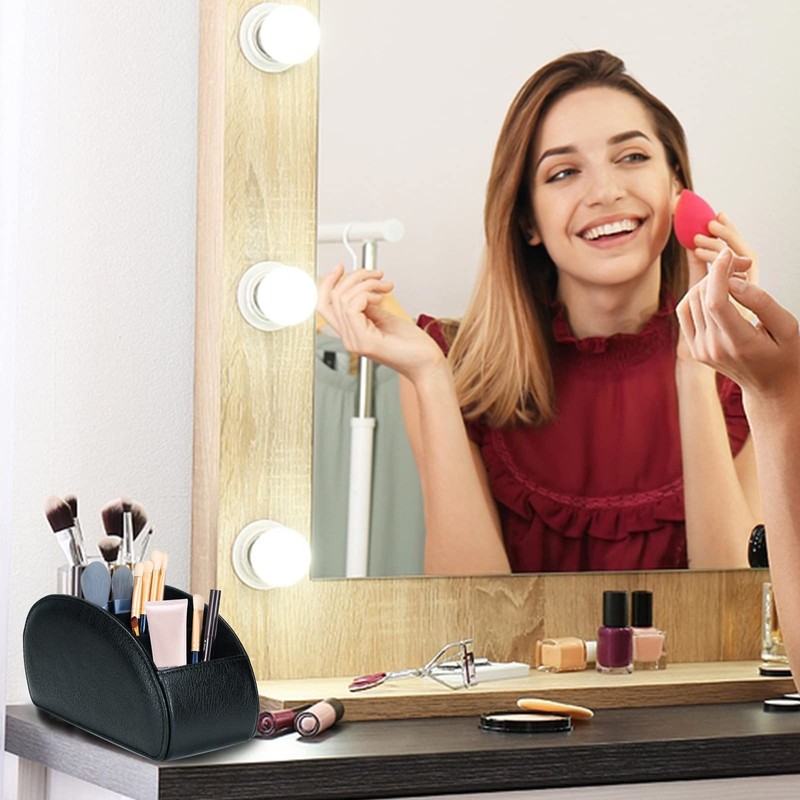 - Improved design: we have thickened the thickness of the side of the storage box (5 mm/0.2 inches), making it feel softer and more comfortable. 5 improved and extended compartments allow you to perfectly store mobile phones, remote controls, makeup brushes, pens, office supplies and other small electronics.
