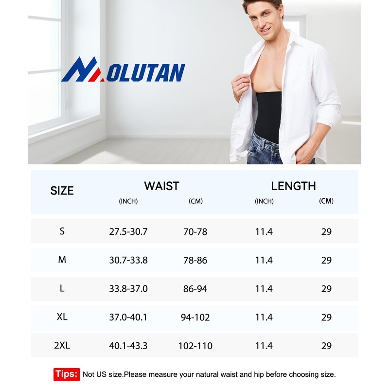 MOLUTAN Seamless Waist Trainer for Men Corset Tummy Control Shapewear Under Clothes Waist Slimmer Girdle Black