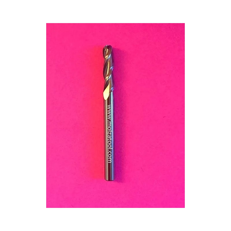 MOLZA TOOL CARBIDE BALL NOSE END MILL 1/4" ALUMINUM 3/4" LOC 3 FLUTE 3" OAL 37 DEG HELIX