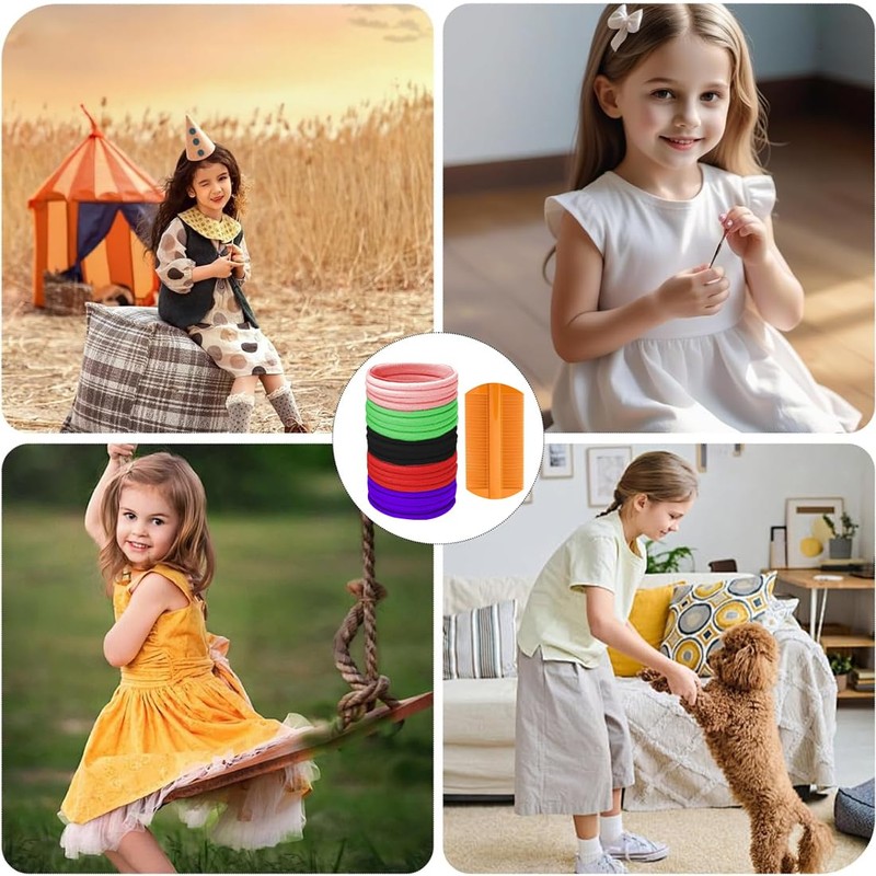 - Packing list: 2 packs of anti-lice hair bands, each pack contains 20 hair bands, with 1 extra fine tooth comb, there are five different colours: black, red, blue, fluorescent yellow and pink.