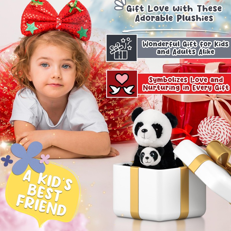 - FULL OF CUDDLES AND HUGS - Our stuffed panda will be loved by adults and children alike. These plush toys with an unbeatable level of cuteness become the perfect gift for any occasion! Kids will be happy to receive this mom and baby panda plush toy as a birthday gift.