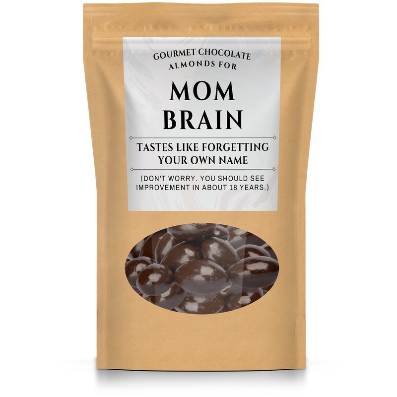 Mom Brain Gourmet Chocolate Almonds - Cocoa Dusted Kepperton Dark Chocolate Almonds - Special Candy Gifts for Women Mothers Day, Birthdays, Christmas Stocking Fillers for Moms
