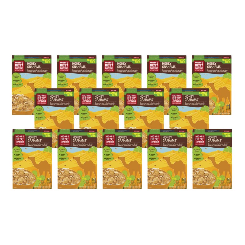 Mom's Best Honey Grahams Cereal, Made with Whole Grain, No High Fructose Corn Syrup, Made with Real Honey, Kosher, 17.5 Oz Box (Pack of 14)