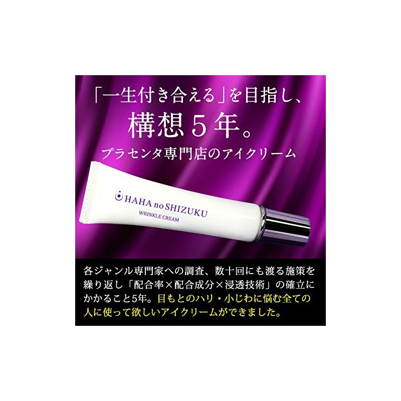 Eye cream from placenta specialty store. 5 years required to establish "Blending Ratio x Composite Distribution x Penetration Technology" An eye cream that is great for anyone who suffers from tightness and small wrinkles in their eyes and mouth.