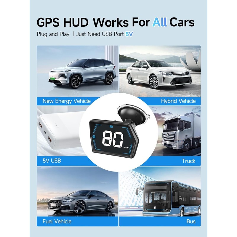 - Easy to Install &Suitable for All Cars: The installation of this speedometer is very simple. Plug and play, all you need to do is connecting the USB cable to the USB port 5V or the cigarette lighter interface 5V. Complimentary head-up device suction cup, you can attach the head-up device to any position. In addition, it's compatible with all vehicles, including new energy, hybrid, fuel, buses, and trucks. Really convenient for drivers
