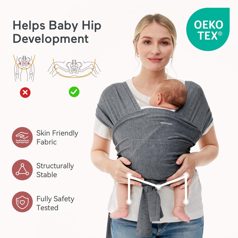 Momcozy Baby Wrap Carrier, Easy to Wear Infant Carrier Slings, Lightweight Hands Free Baby Sling, Adjustable Baby Carriers for Newborn to Toddler 8-35 lbs, Deep Grey