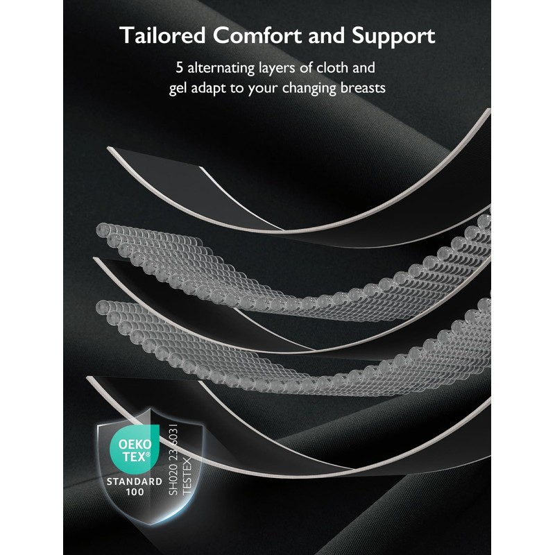 - All-day Support and Confidence: Engineered with a W-shaped band made from 5 alternating layers of cloth and gel, the nursing bras adapt to your changing breasts. The widened straps alleviate pressure on your shoulders, providing all-day support and boosting your confidence. Experience the ultimate in supportive nursing bras that cater to your needs.