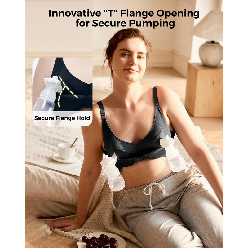 Experience worry-free pumping with our innovative hands-free pumping bra, featuring a unique T-shaped flange opening that securely holds your breast pump in place. No slipping, no readjusting—just total stability. Whether you're working, reading, or multitasking around the house, enjoy full freedom and confidence with reliable leak protection and full coverage.