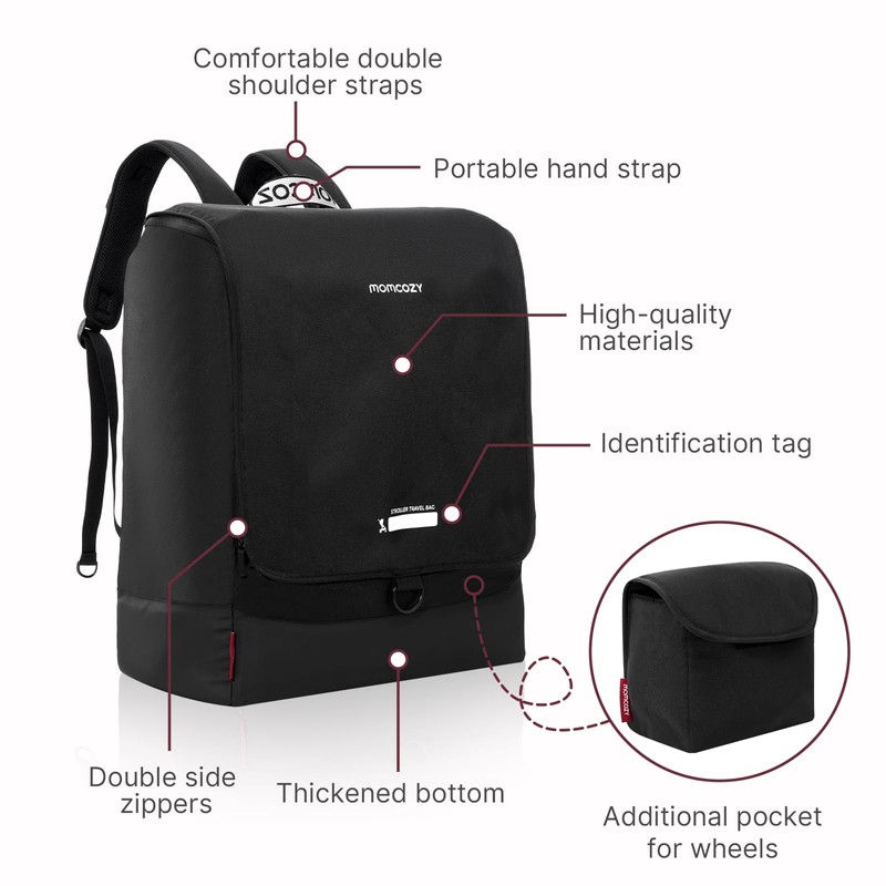 - Universal Fit Travel Bag:Designed to securely hold most strollers ( within 22.1 X 17.3 X 9.8 Inch folded size), compatible with Momcozy ClickGo Baby Stroller and major brand models.Whether you need it at the airport or on an outing, this bag has you covered.