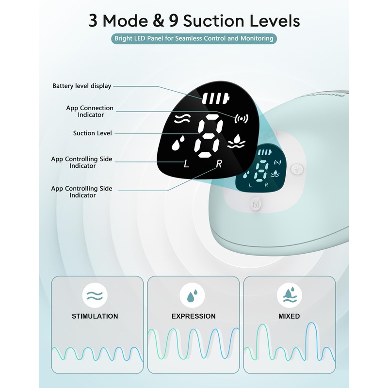 MOMFANN Breast Pump Wearable, Hands-Free APP Control Portable Breastfeeding Pump with Efficient Milk Output, Leak-Proof Design, Discreet, Quieter, 3 Modes 9 Levels Electric Breast Pump, Green