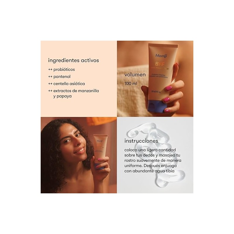 Momiji BFF Cleanser, Barrier Friendly Foam, limpiador facial, textura en gel con probióticos 120 ml