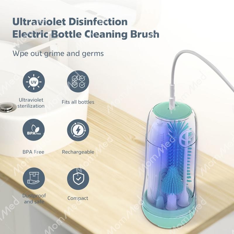 MomMed Electric Brush Set, Fit for tommee tippee, dr brown sippy cup, milk spray baby, baby formula, baby sanitizer spray Smart - Style: Green Bottle Brush & Suckers Feeder Orange