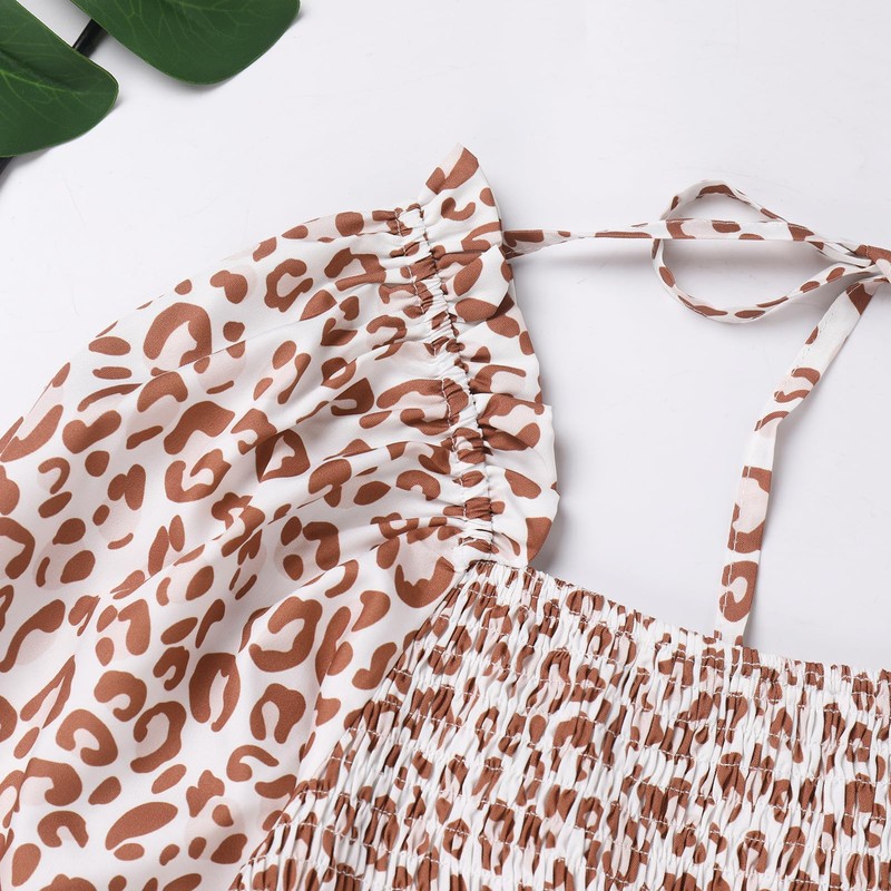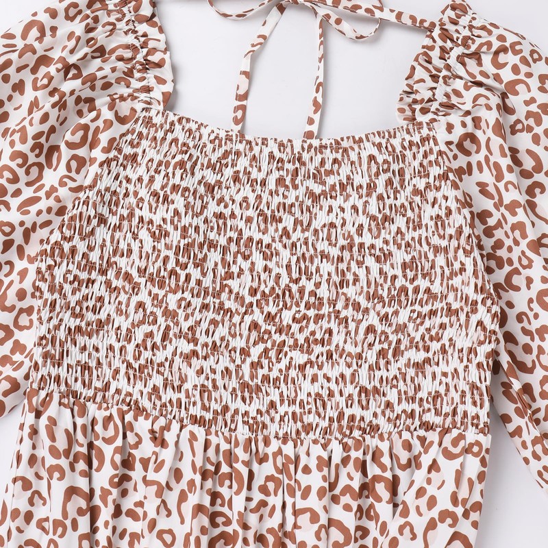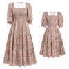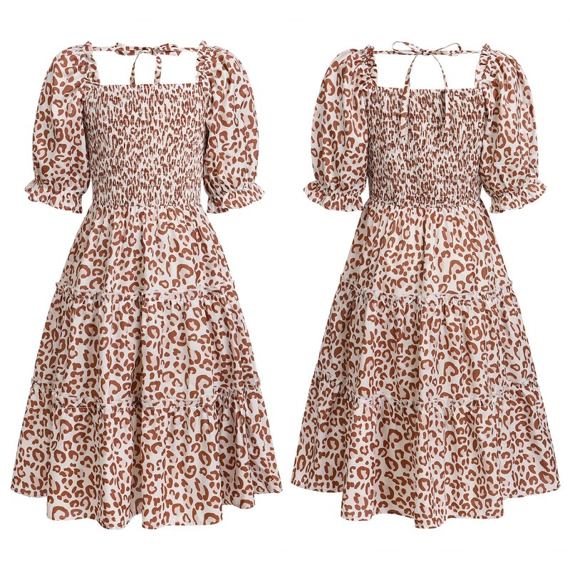 Mommy and Me Matching Dresses Floral Printed Ruffled Short Lantern Sleeves A-Line Long Dress Hidden Back Zipper Closure Summer Mom Daughter Matching Outfits Coffee Leopard 11-12 Years