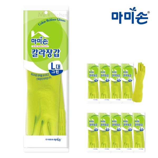 Mommy Son colored rubber gloves green large 10 pairs / 마미손 칼라고무장갑 그린 대 10켤레
