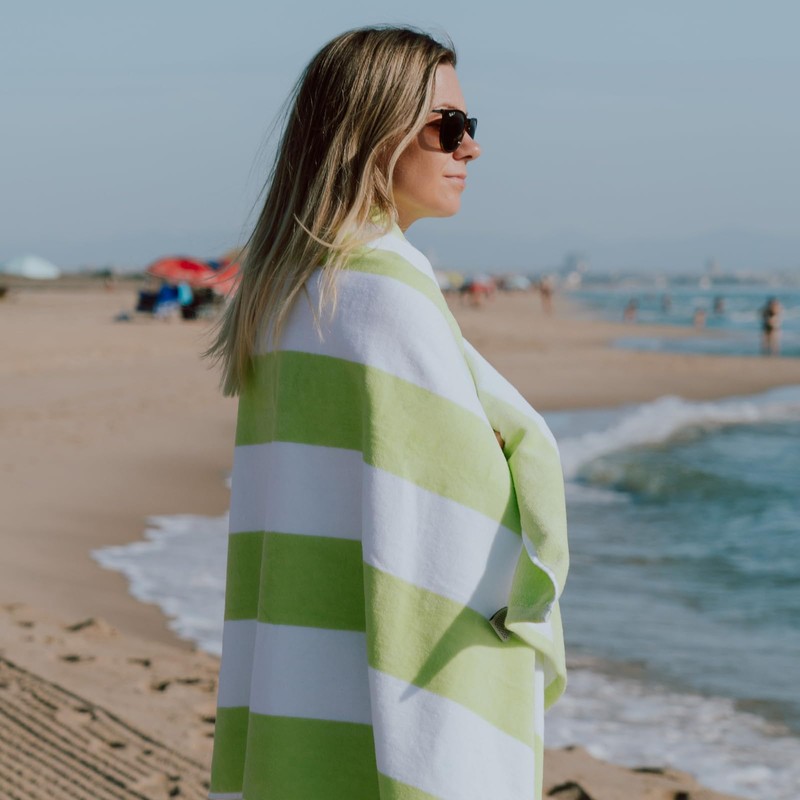 MOMOMUS Beach Towel Cotton - 100% Velour Cabana Stripes, Ultra Absorbent - Beach Towel Large Bath Towel Beach Towel Large Beach Towel for Swimming Pool - Green, 90 x 180 cm